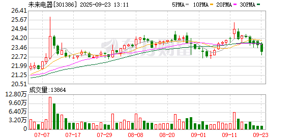 证券时报·数据宝统计,截至发稿,未来电器最新股价为23.08元,下跌2.24%,本期筹码集中以来股价累计下跌3.95%。具体到各交易日同花配资,3次上涨,6次下跌。